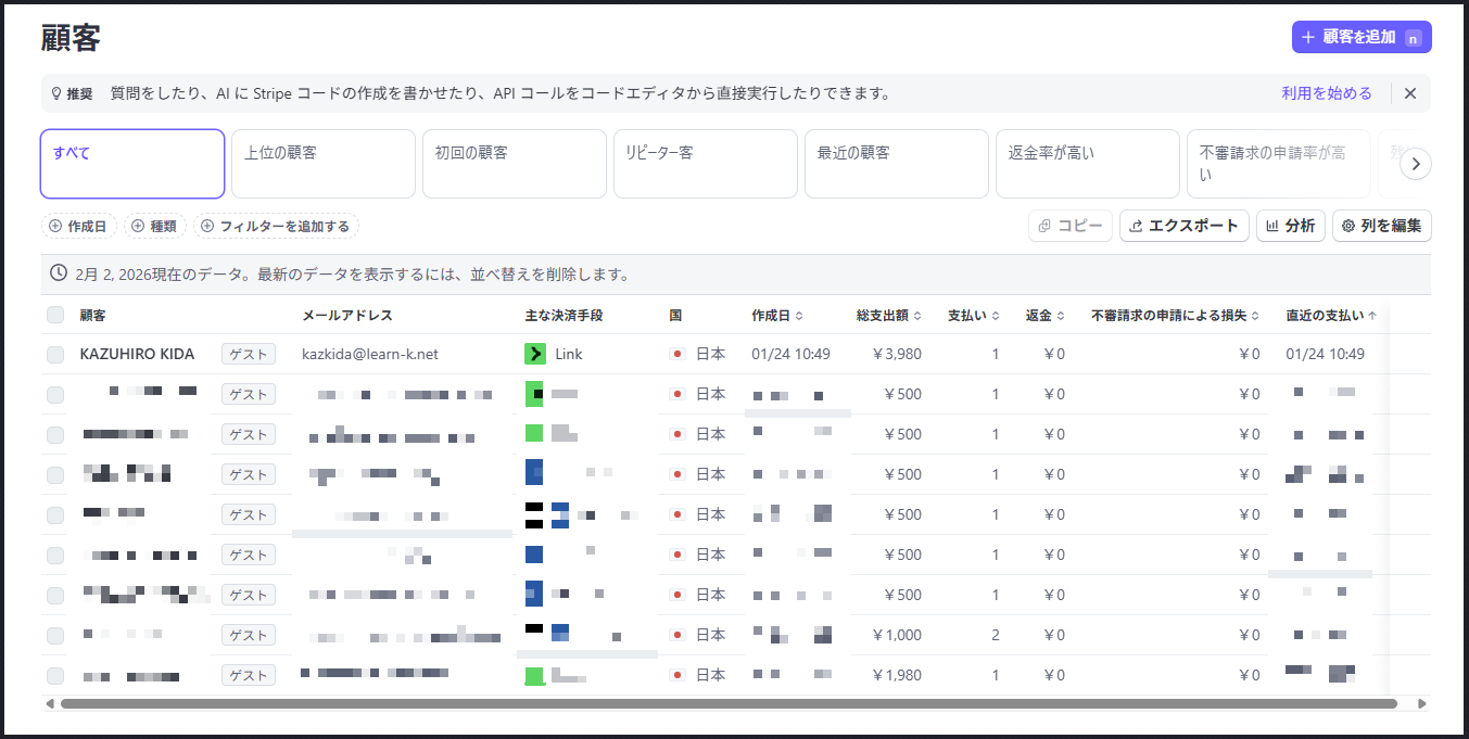 • 課金(決済):Stripe(クレジットカード決済やサブスク課金を処理する仕組み)